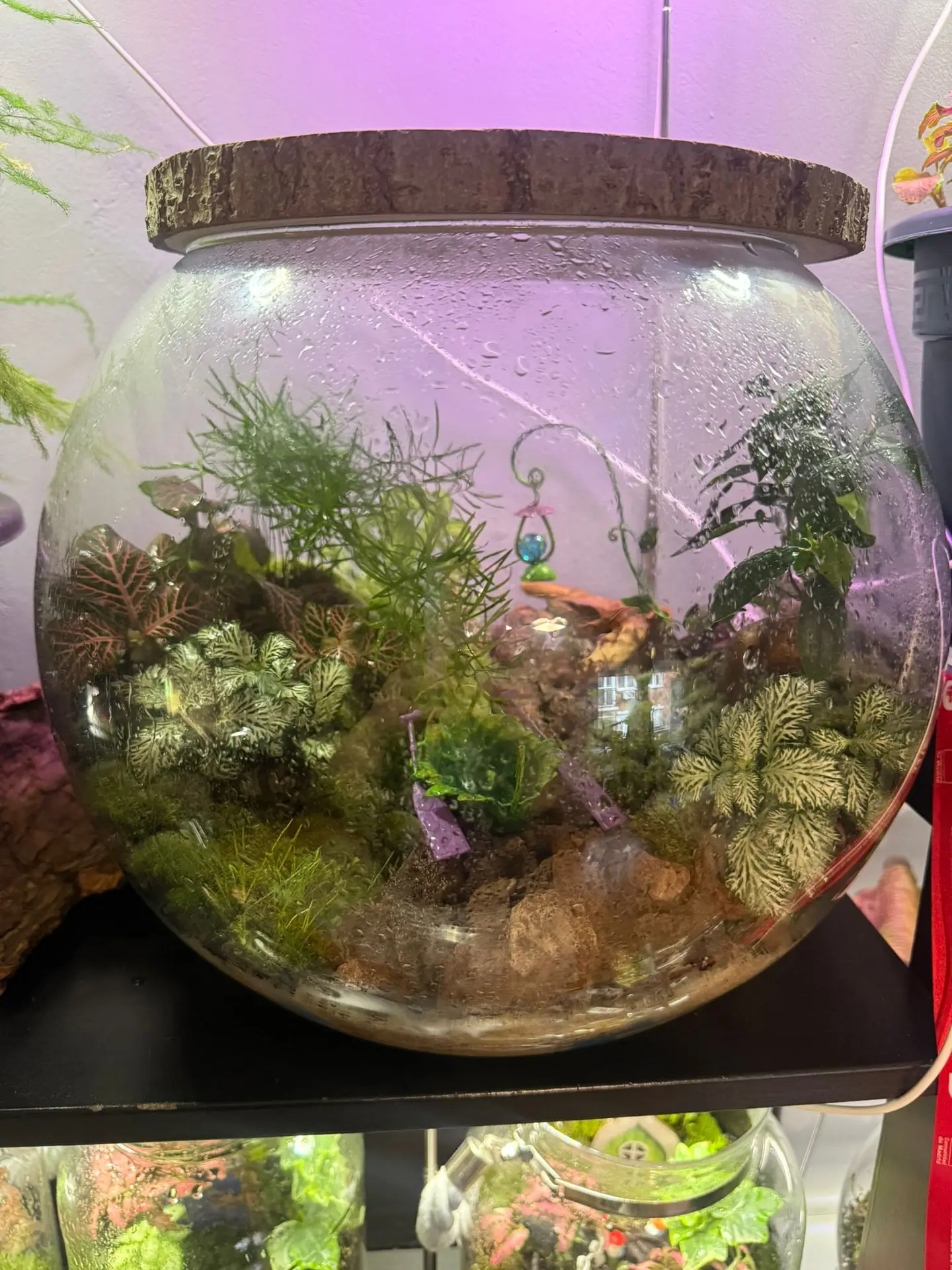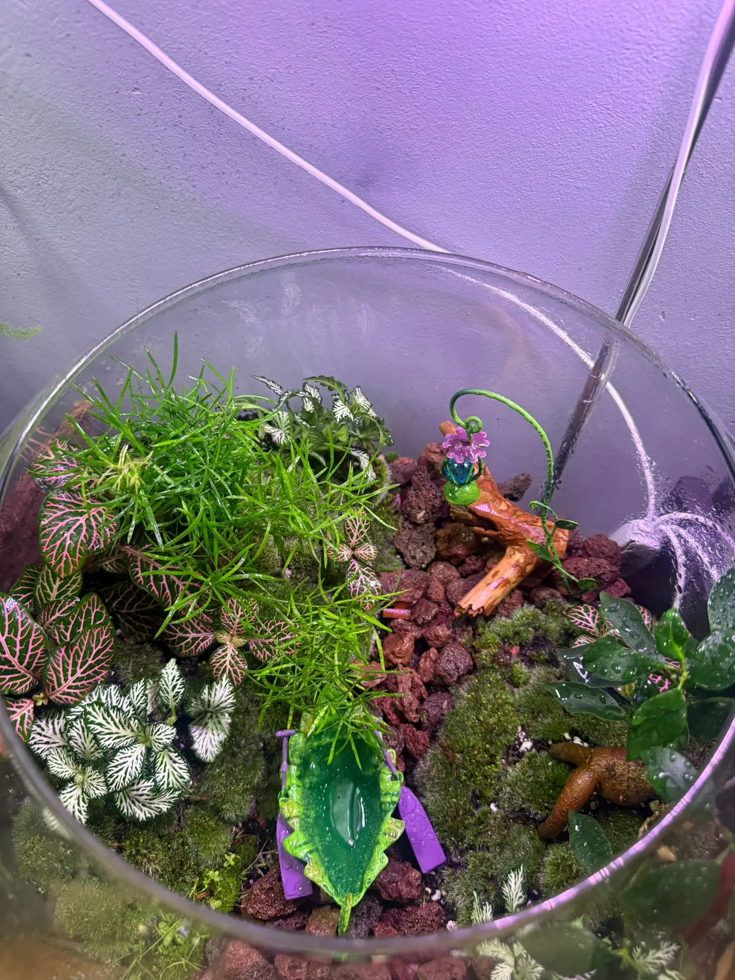 30cm de naturaleza serena: musgo, fitonias, y ficus en armonía viva.